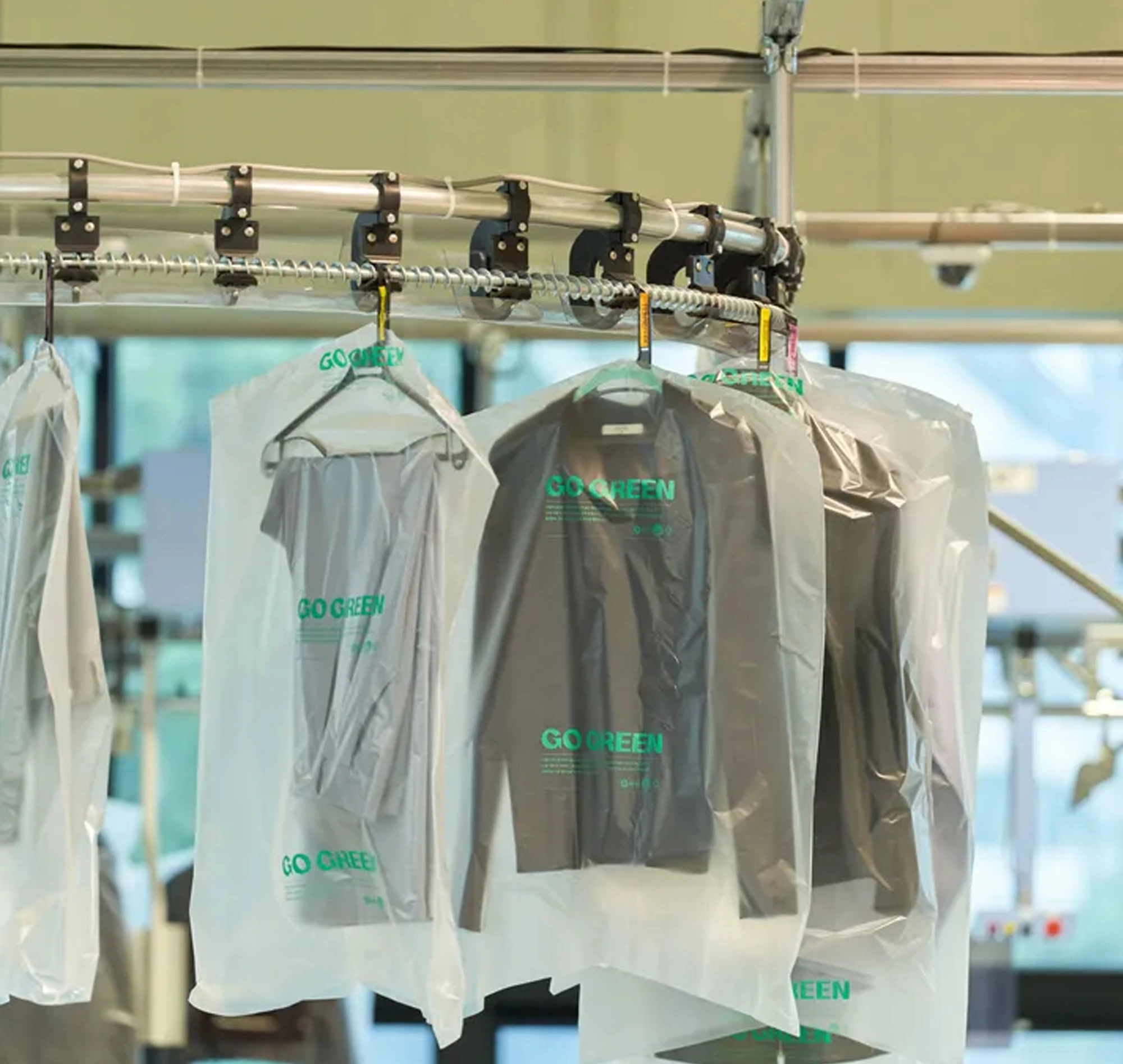 취재차 군포시 당정동에 있는 런드리고 글로벌 캠퍼스를 찾아 내부를 둘러봤다. 잘 말려서 뽀송해진 세탁물에서 나는 향이 곳곳에서 풍겨와 기분이 산뜻해졌다. 곧이어 굉장한 규모의 설비들이 쉴 새 없이 움직이는 모습에 압도됐다. 옷들이 매우 빠르게 자동으로 이동하는가 하면 사람 몇 명이 충분히 들어가고도 남을 만큼 초대형 규모의 세탁기 수십, 수백 대가 돌아가고 있었다. 의식주컴퍼니가 세계 최초로 개발한 세탁물 합포장 설비 역시 막대한 규모를 자랑했다. 규모 면에선 일반 소비자들을 대상으로 한 세탁 스마트 공장 중 군포 팩토리가 세계에서 가장 크다는 게 의식주컴퍼니 설명이다.