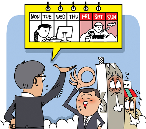 이재명 민주당 대표는 지난 10일 국회 교섭단체 대표 연설에서 “노동시간을 줄이고 ‘주 4.5일제’를 거쳐 ‘주 4일 근무 국가’로 나아가야 한다”며 주4일제 화두를 던졌다. 문재인 정부의 ‘주 52시간 근무제’ 정책과 맞물려, 노동시간 단축은 지난 대선 때도 여야 후보 간 쟁점이었다. 당시 윤석열 대통령은 노동시간의 유연화 필요성을 역설했고, 이 대표는 주4일제를 포함한 노동시간 단축 필요성을 강조한 바 있다.