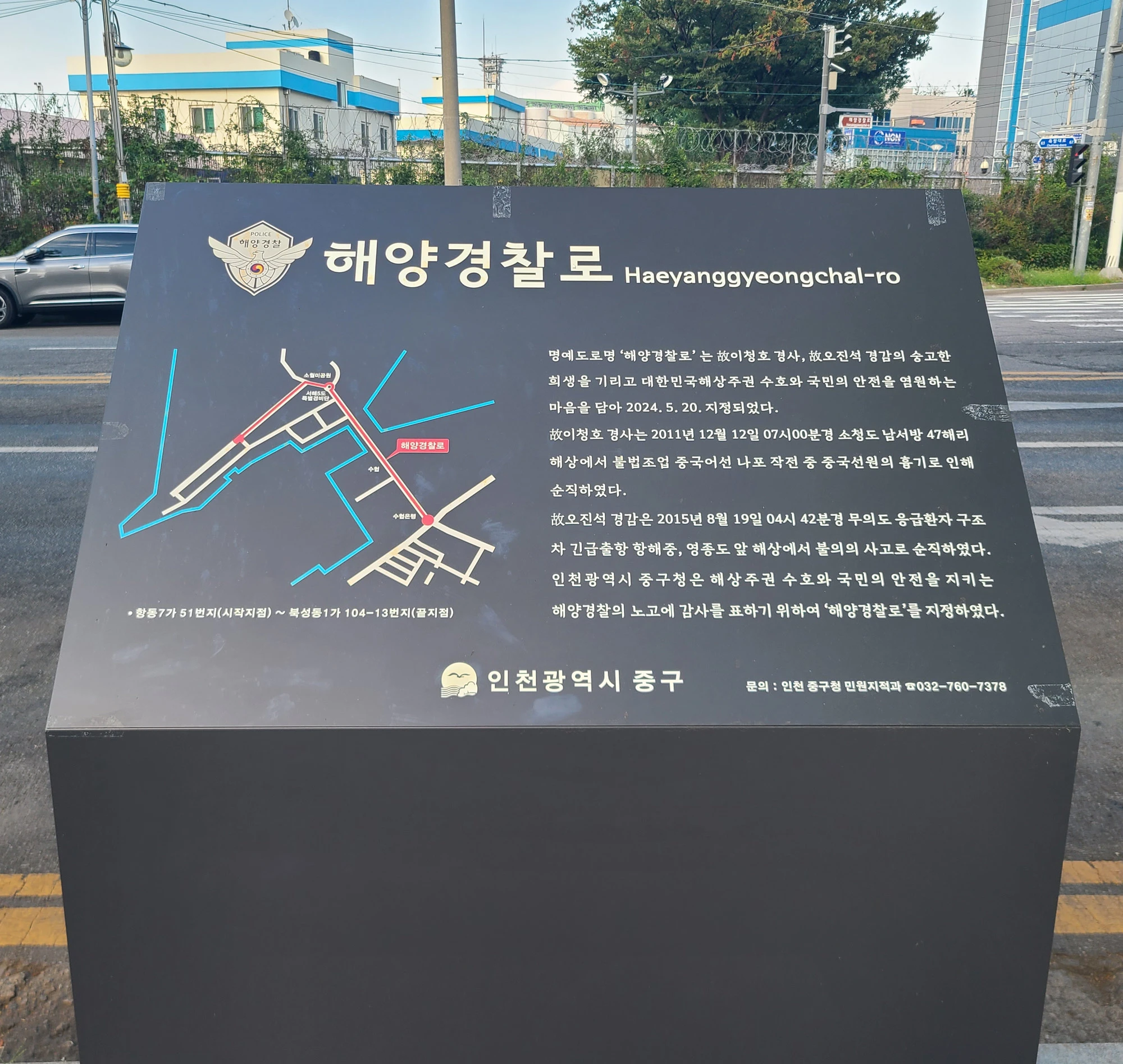 인천 중구는 지난해 5월 시민들에게 해양경찰을 바로 알리고 순직한 해양경찰을 추모하기 위해 명예도로로 지정했다.