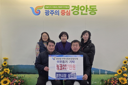 경안시장 상인회는 최근 어려운 이웃을 위해 사용해 달라며 성금 237만원을 광주시 경안동 지역사회보장협의체에 기탁했다.
