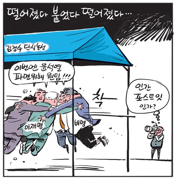 [경인만평] 떨어졌다 붙었다 떨어졌다…