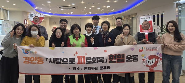 안정적 혈액수급에 대한 목소리가 높아지고 있는 가운데 광주시 경안동 행정복지센터가 20일 관내 6개 기관사회단체 회원 및 센터 직원들이 참여한 ‘사랑으로 피로회복’ 헌혈 운동을 실시했다.