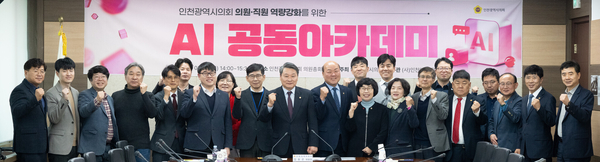 인천시의회 주최, (사)인천아카데미 주관으로 지난 21일 오후 2시 시의회 의원총회 회의실에서 열린 ‘AI 공동 아카데미’에는 시의원, 공무원 등 50여 명이 참석했다.