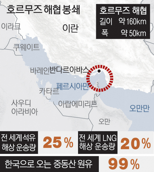 코트라(대한무역투자진흥공사·KOTRA)는 최근 보고서에서 한국으로 오는 중동산 원유의 99%가 이 해협을 통과한다고 분석했다.