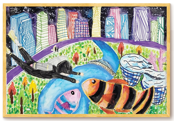 올해는 바다에 대한 진심을 담아 표현해보자고 다짐했는데, 이렇게 대상을 받게돼 정말 행복하고 꿈만 같다. 미래에는 바다의 모습이 계속 변해 내가 살고 있는 동네(송도)도 물에 잠기는 해저 도시가 될 것이라는 상상으로 그림을 그렸다. 일반적인 파란색 바다 보다는 밤이 되면 더 빛이 나는 해저 도시의 아름다움을 그림에 담고 싶었다. 항상 응원해주신 부모님과 따뜻하게 지도해주신 선생님께 감사하다.