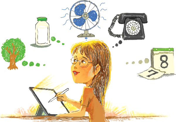 여름 풍경이어야 한다. 왜냐면 선풍기를 그리고 싶으니까. 자고로 선풍기라면 파란 날개가 시원해 보이지. 달깍달깍 소리를 내는 풍속 버튼과 타이머. 스크린을 여닫는 문짝이 달린 텔레비전이 있었고, 식탁 위 밥보자기를 걷어보면 아침에 먹다 남은 반찬 그릇과 식은밥이 있었다. 아침마다 배달되던 하얀 병 서울우유는 종이 뚜껑 벗겨내기가 쉽지 않았는데. 델몬트 주스 병엔 노란 보리차가 담겨서 유리컵 한가득 따라 마시면 가끔 보리알이 씹히기도 했다. 꼭 여름이어야 하는 건 마루 문밖으로 초록 나무들을 신나게 그리고 싶어서였다. 넓지도 않은 마당이었다. 아니, 그땐 아주아주 넓다고 생각했다. 마당에서 강아지도 키울 수 있었고, 딸기도 심었고, 포도나무도 있었으니까. 우리 세 자매는 마당에서 땅따먹기도, 고무줄놀이도 얼마든지 할 수 있었다. 나중에 훌쩍 자란 다음 그 옛집을 찾아갔을 때, 그 낮은 담장과 좁은 마당에 화들짝 놀랐더랬다. 여기서 그 많은 것들을 다 했다고?