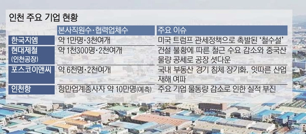 한국지엠과 현대제철 협력업체 대부분은 전통 제조업을 기반으로 성장해온 기업들로, 이들에게 일감을 주는 모기업이 힘을 잃게 되면 인천 경제 전반에 치명타를 줄 수밖에 없다. 이와 함께 건설경기 침체가 장기화하고 있는 상황에서 인천 건설업계의 큰 축을 담당하는 포스코이앤씨가 무너질 경우 인천 건설업계 전체가 흔들릴 수 있다.