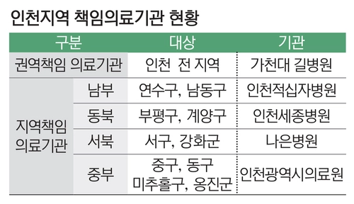 정부는 인구 300만명 대도시로 성장한 인천광역시의 권역책임의료기관으로 2021년 2월 상급종합병원인 가천대 길병원을 지정했다. 인천에는 권역책임의료기관 아래 4개 종합병원이 ‘지역책임의료기관’ 역할을 맡고 있다. 이 병원들이 구성한 ‘인천시 책임의료기관 공동 원외대표협의체’는 지역 공공의료 현안 해결의 우선순위를 정하고 사업 방향 등을 협의해 실행하고 있다.