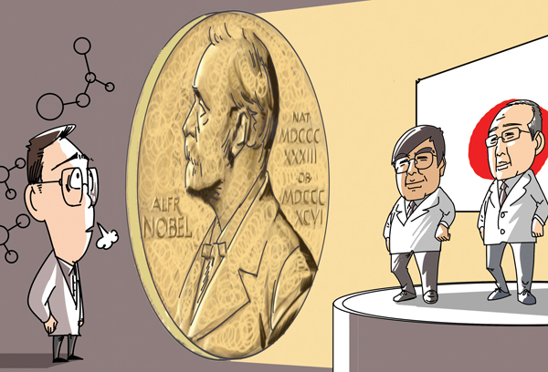 올해 일본은 노벨상 2년 연속 배출로 떠들썩하다. 지난해 생리의학상에 이어 이번엔 생리의학상과 화학상까지 2관왕 겹경사다. 지난 6일 사카구치 시몬 오사카대 명예교수가 생리의학상을, 이틀 뒤 기타가와 스스무 교토대 특별교수가 화학상 수상자 명단에 올랐다. 1949년 유카와 히데키 박사의 물리학상 수상 이래 개인과 단체 포함 무려 31번째다. 물리학상 12명, 화학상 9명, 생리의학상 6명, 문학상 2명, 평화상 개인 1명·단체 1곳에 달한다. 1969년 신설된 경제학상을 제외한 전 분야에서 수상했다. 2000년부터 2002년까지 3연속 화학상, 2002년 화학상·물리학상 동시 배출까지 성적표가 화려하다.