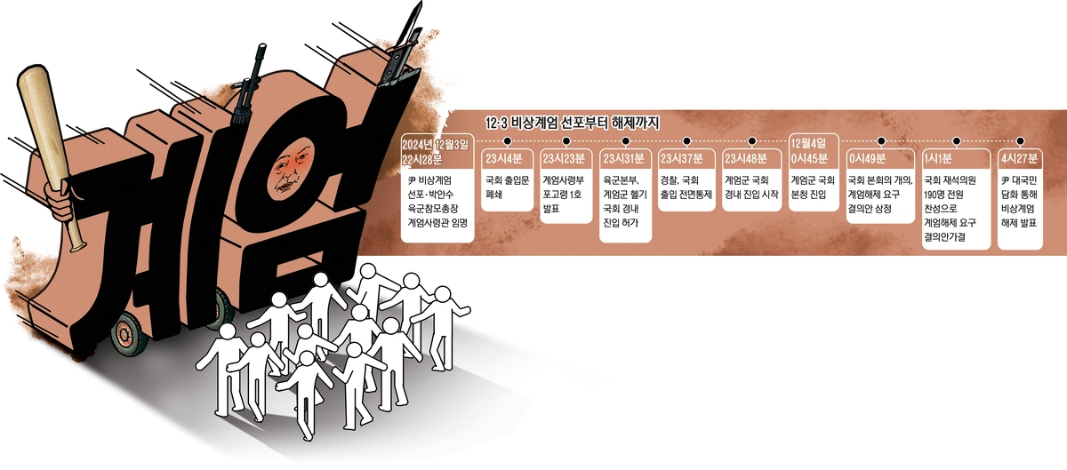지난해 12월3일 오후 10시28분 윤석열 대통령이 비상계엄을 선포한 뒤 계엄군이 국회로 진입했다. 민주주의를 훼손하려는 시도를 막기 위해 많은 시민이 국회로 향해 군경과 실랑이를 벌였다.