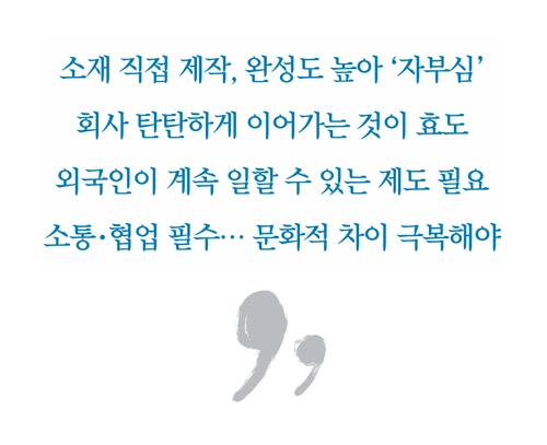 이 대표는 “예를 들어 베트남 국적의 중간 관리자가 한국인 직원에게 업무 지시를 내릴 때 잘 받아들일지 의문이 있다”며 “뿌리산업은 소통과 협업이 필수인 만큼 이런 문화적인 차이를 극복하려는 방안도 외국인 인력의 제도 개선과 함께 필요한 부분”이라고 했다.