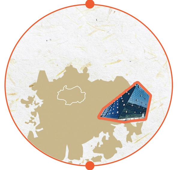 전남 광양에 자리한 전남도립미술관을 처음 만났을 때 떠오른 이미지는 ‘야트막한 산’이었다. 파란 하늘 아래 비스듬히 경사진 모습으로 자리한 미술관은 외관을 감싼 푸른빛의 유리 파사드와 어우러져 현대적인 분위기를 자아냈다. 마침 개관 기념 전시 제목이 ‘산을 등지고 물을 바라보다’였는데, 미술관 이미지와 어울린다는 생각도 했다. 위로 높이 솟은 대신 좌우로 길게 펼쳐진 미술관은 실제로는 하나로 연결되어 있지만 중간에 세로로 길게 틈을 둬 외관상 세 개의 건물이 이어진 것처럼 보인다. 미술관 자리가 옛 기차역이었음을 떠올린 사람들은 마치 기차 세 량을 연결해 놓은 듯한 미술관의 모습을 흥미롭게 바라볼 터다. 유리로 덮인 미술관은 자연을 그대로 담아내는 캔버스 역할을 한다. 야간개장일에 미술관을 찾는다면 실내 불빛이 바깥으로 쏟아지며 만들어내는 멋진 야경도 감상할 수 있다.