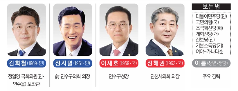 국민의힘은 이재호 구청장이 3선에 도전한다. 이 구청장은 2014년·2022년 선거에서 각각 당선됐다. 이번에 당선된다면 3선이자 연임에 성공하게 된다. 이재호 구청장은 연수구의회 의원, 인천시의원을 지내는 등 풍부한 의정 활동 경험도 강점으로 꼽힌다. 또 재임 기간 연수구 공영버스 도입 등 특색 있는 사업을 추진하며 주목을 받았다. 각종 구정 운영 성과를 내세우는 선거전을 펼칠 것으로 보인다.