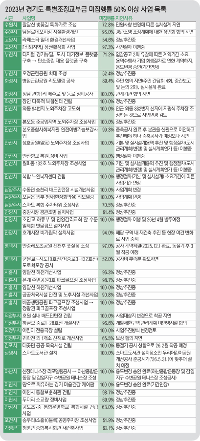 특별조정교부금(이하 특조금)은 말 그대로 ‘특별한’ 재정 수요에 지원하는 금액이지만, 정작 시·군이 교부받은 특조금 상당액이 본 목적대로만 쓰인 게 아닌, 다른 사업에도 쓰였던 것으로 파악됐다. 치열한 ‘쩐의 전쟁’으로 얻어낸 돈을 미처 다 쓰지 못하는 것도 문제이지만, 애먼 곳에 사용하는 일 역시 특조금 본래 취지를 비껴갔다는 지적이다.