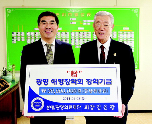 이 장학금은 (재)광명애향장학회의 장학기금으로 적립된다. 광명성애병원은 지금까지 모두 8차례에 걸쳐 9천500만원의 장학금을 광명애향장학회에 기부했다.