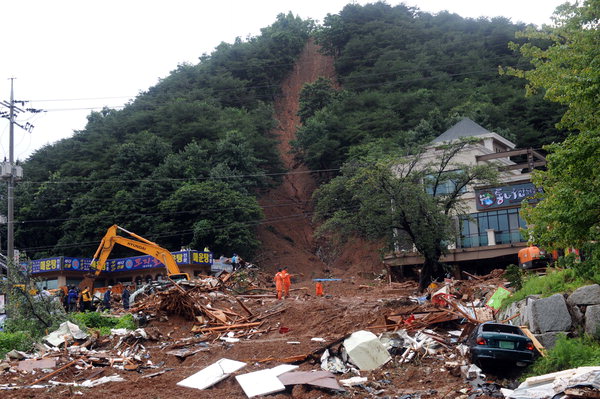 경찰은 일단 집중호우로 물을 머금은 토사가 미끄러지면서 펜션 등을 덮친 것으로 보고 정확한 사고 경위를 조사하고 있다.
