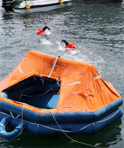 | ▲ 세월호 참사. 사진은 어민들이 구명뗏목을 펼쳐 어선에서 탈출하는 체험 교육을 받고 있는 모습. /연합뉴스 |